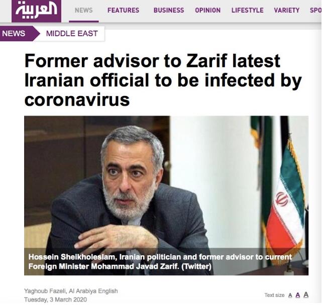 【香港商报网讯】据阿拉伯国有电视台3月3日消息,伊朗外长扎里夫前顾问、伊朗资深政治人物侯赛因·谢赫伊斯兰 (Hossein Sheikholeslam)确诊感染新冠肺炎病毒。