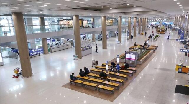 3月3日下午,韩国仁川机场入境大厅旅客稀少。