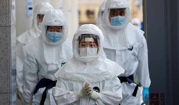 在大邱,穿上防護裝備的醫護人員進入醫院。路透社