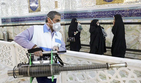 伊朗疫情持續,工作人員加緊在寺廟內加緊消毒。網絡圖片