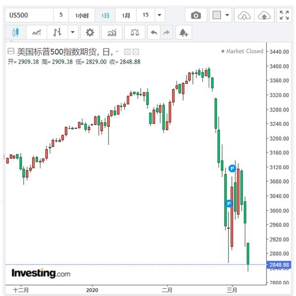 國際油價雪崩,導致全球避險情緒再次升溫,美國三大股指期貨開盤後,跌幅不斷擴大。道指期貨跌超千點,隨後有所拉升。標普500指數期貨盤中跌幅4%,截至發稿,標普500指數期貨仍跌近4%。納指期貨盤中也一度跌逾4%,截至發稿,跌幅收窄至逾3%。