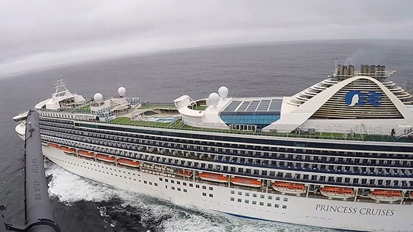 此前,該郵輪停泊在離海岸線約10英里的三藩市外海上,郵輪上有大約2400名乘客和1100名船員。