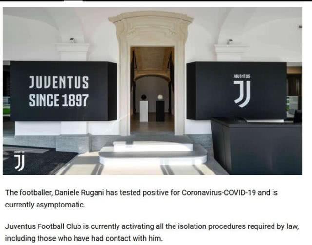 【香港商报网讯】北京时间12日,意甲俱乐部尤文图斯官方宣布,队中后卫鲁加尼的新冠肺炎病毒检测结果呈阳性,目前没有症状。