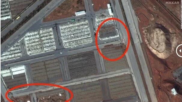 有线电视新闻网(CNN)和《纽约时报》等美国媒体12日发布了一组伊朗库姆的卫星图像,称伊朗正在迅速扩建当地的一个大型公墓。从去年10月和今年3月的卫星图像对比中可以看到,有两块疑似新修缮的墓地区(图中红圈所示)。