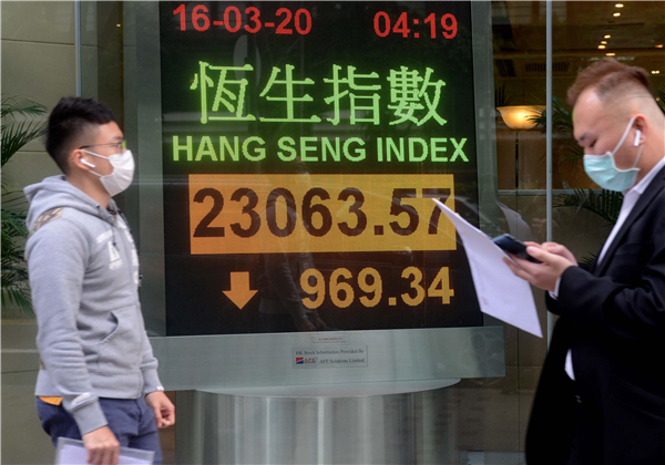 恒 指 昨 日 收 市 報 23063 點,跌幅4.03%。 中新社