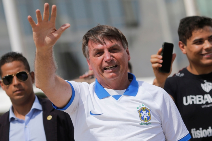 巴西總統博索納羅15日出席一場千人集會,並和民眾握手自拍。博索納羅13日曾接受新冠病毒檢測,結果為陰性。陪同其訪美的團隊中已有7人確診。他將在近日進行第二次檢測。