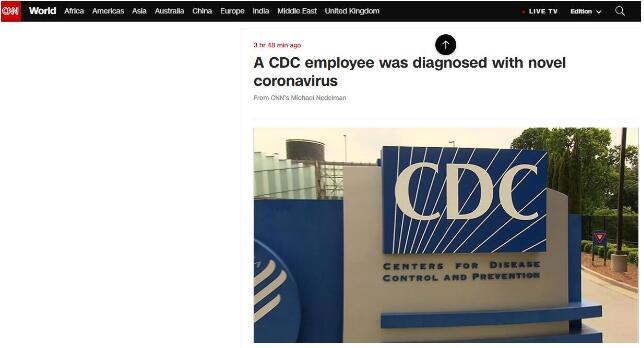 【香港商报网讯】据美国有线电视新闻网(CNN)16日报道,美国疾病控制和预防中心(CDC)一名雇员确诊感染新冠病毒。