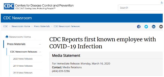 美疾控中心关于确诊雇员的声明。图源:美疾控中心官网