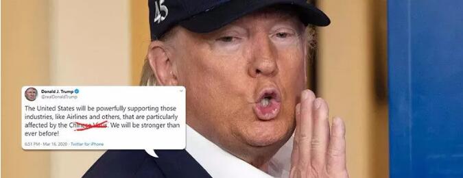 特朗普在推特上声称,“美国将大力扶持包括航空领域在内的美国企业,尤其是那些受到‘中国病毒’影响的领域。我们会变成史上最强。”
