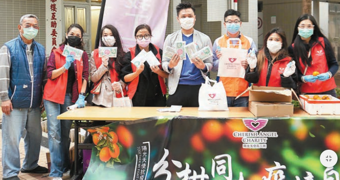 【香港商報网訊】記者呂明霞報道:新冠肺炎疫情全球蔓延,香港本地疫情亦較為嚴重。陽光天使義工團積極尋找防疫物資,包括醫用口罩、潮州柑、酒精搓手液等,並舉辦「分柑同味疫境自強」活動,日前分別派送「心繫香港」抗疫包予啟業、幸福、鳳凰邨的獨居長者和低收入人群,協助他們渡過疫情難關。