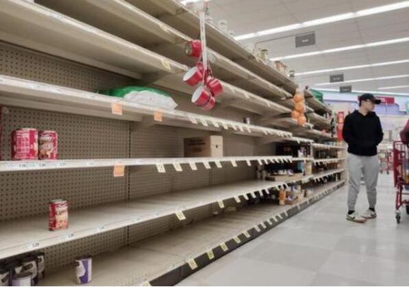 3月17日,在美国旧金山湾区米尔布雷市的一家超市,货架上的货物所剩无几。新华社