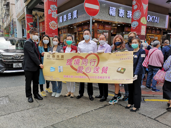 【香港商報網訊】福泰珠寶日前舉行「疫境同行 愛心送餐」活動,於其分店九龍深水?汝州街271號地下向長者、街坊們捐贈派發1000份午餐飯盒、1000支酒精洗手液及1000包紙巾等。