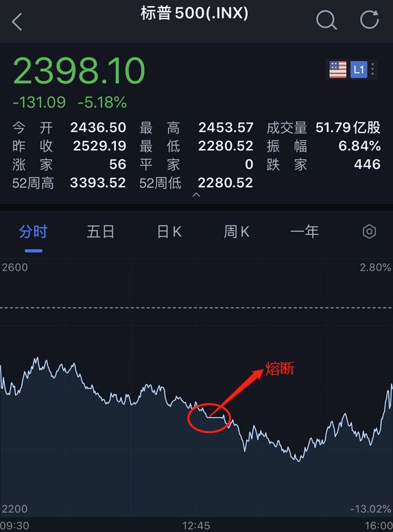 这是美股史上的第五次熔断,也是今年3月以来第四次熔断。此前四次美股熔断分别发生于1997年10月27日以及2020年3月9日、3月12日、3月16日。