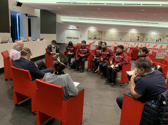 意大利时间3月19日,到达米兰次日,由浙江大学医学院附属第一医院、省中医院、省疾控中心、省立同德医院医疗力量所组成的专家组马不停蹄前往伦巴第大区卫生部门,了解伦巴第大区最新疫情情况及诊疗措施,并分成疾控组和医疗组分别与意方一线医疗专家深入交流诊治和防控经验,介绍中国防控和诊疗方案,解答意方在病毒检测等方面所关心的问题。