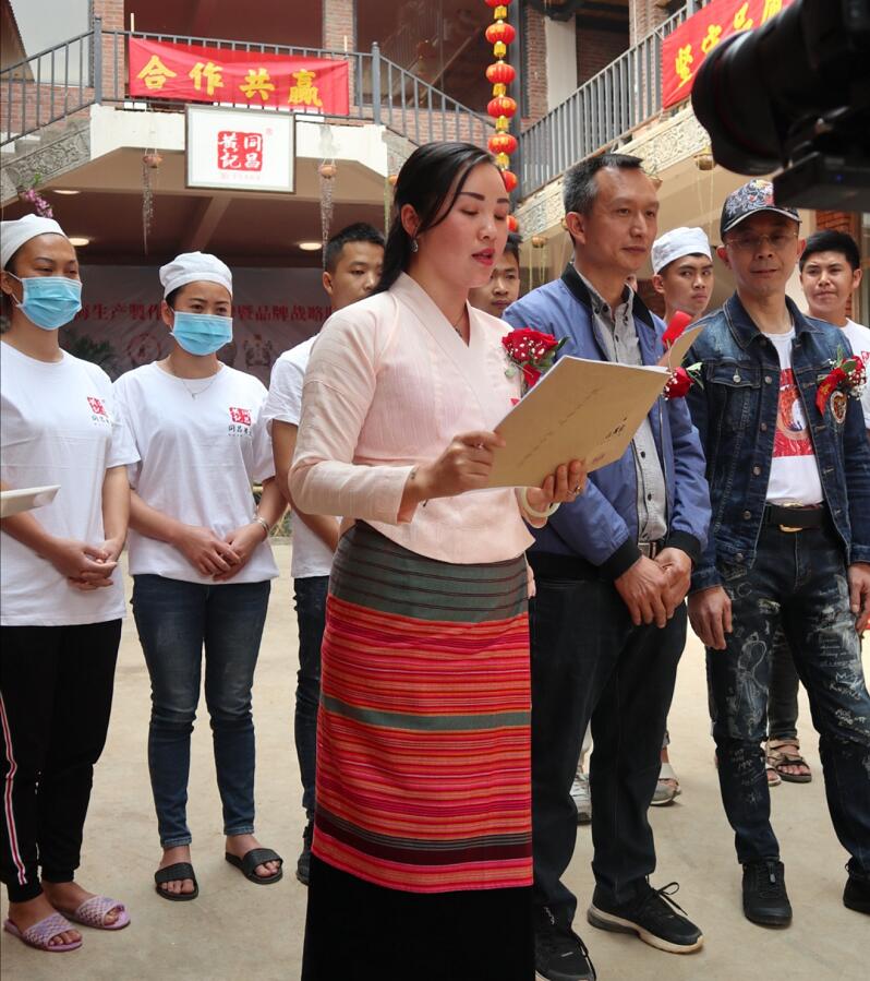 云南章哈非物质文化遗产传承人、同昌号茶叶有限公司董事长玉叫女士表示:「今天是香港知名品牌鱼吻莲进驻勐海,与同昌号开展更为深入的合作,为共同发展合作共赢开拓了新的局面。感谢鱼吻莲香港公司董事长吕剑先生的信任。我们将以更加专业的态度和百分百的热情为鱼吻莲的全线品牌生产制作,把握好源头关。保证每一个产品都出自精心制作真材实料和安全健康,为双方企业的共同发展进步谱写辉煌的乐章。」