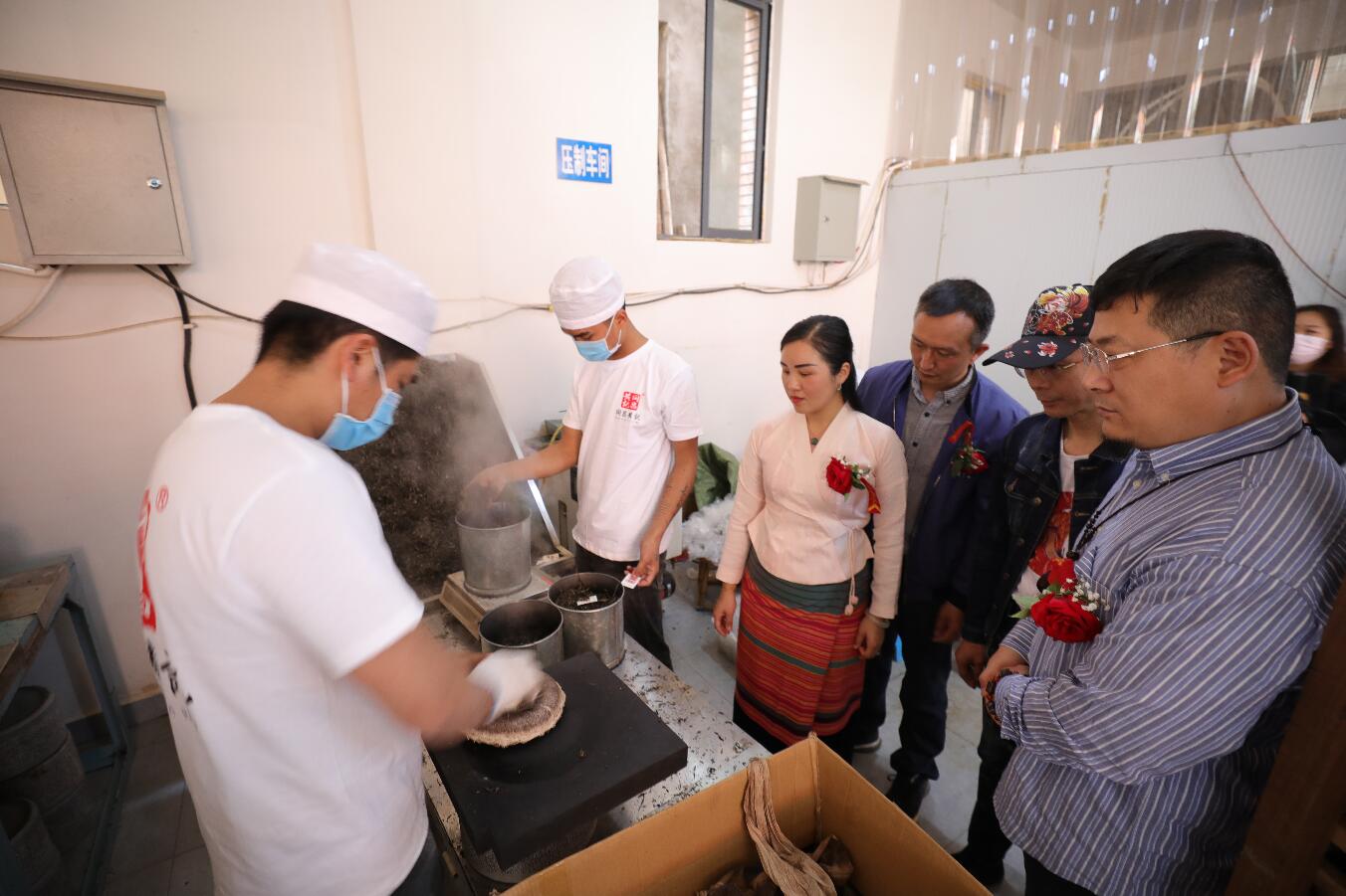签约结束后,与会嘉宾共同移步生产车间,共同见证了鱼吻莲的春茶头茶「金孔雀」的生产制作流程。