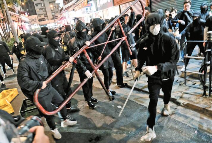 前晚大批黑衣暴徒於元朗一帶集結,期間有人以雜物堵路。本欄圖片均來自中通社