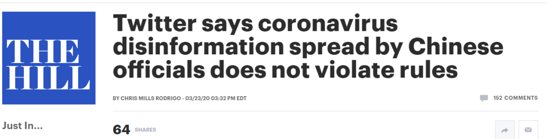 而在推特看来,他们则认为赵立坚的行为本身并没有违反推特的规则,称“目前,直接与其他公众人物互动,评论热点政治议题,或是在经济或军事问题上进行外交上的口水战,通常来说并不违反推特的规则”。