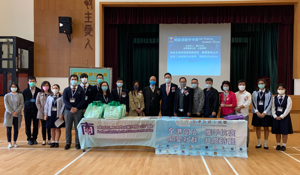 南區工商業聯合會將1500個口罩送贈明愛胡振中中學。