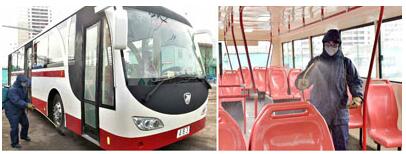 朝鲜公交车内的消毒工作 图片来源:劳动新闻
