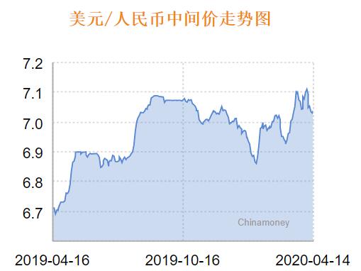 中国人民银行授权中国外汇交易中心公布,2020年4月14日银行间外汇市场人民币汇率中间价为:1美元对人民币7.0406元,1欧元对人民币7.6831元,100日元对人民币6.5360元,1港元对人民币0.90815元,1英镑对人民币8.8105元,1澳大利亚元对人民币4.5008元,1新西兰元对人民币4.2935元,1新加坡元对人民币4.9742元,1瑞士法郎对人民币7.2800元,1加拿大元对人民币5.0718元,人民币1元对0.61388马来西亚林吉特,人民币1元对10.4240俄罗斯卢布,人民币1元对2.5737南非兰特,人民币1元对172.81韩元,人民币1元对0.52192阿联酋迪拉姆,人民币1元对0.53443沙特里亚尔,人民币1元对45.9949匈牙利福林,人民币1元对0.59085波兰兹罗提,人民币1元对0.9716丹麦克朗,人民币1元对1.4199瑞典克朗,人民币1元对1.4618挪威克朗,人民币1元对0.96264土耳其里拉,人民币1元对3.3508墨西哥比索,人民币1元对4.6478泰铢。13日人民币对美元汇率中间价报7.0300,较前一交易日上调54个基点。