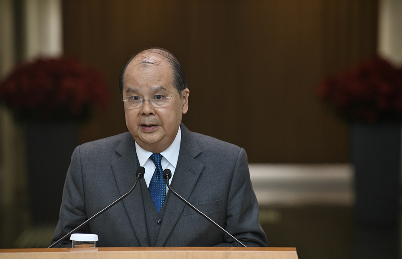 張建宗(左)與陳茂波表示,本港失業率料進一步攀升,就業狀況短期內難好轉。 中通社