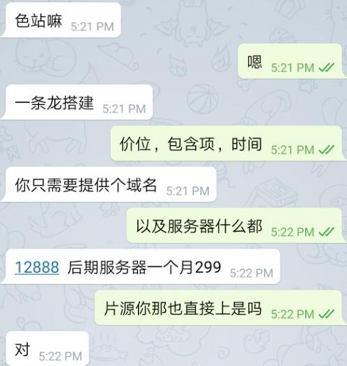 一位网站搭建服务商称,提供色情网站搭建并提供片源,网站可在1小时内搭建完成。