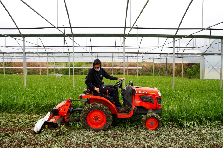 封城令及居家令重創意大利經濟。在聖安傑洛羅馬諾市,一家農業公司的工人把賣不出去的蔬菜用拖拉機毀掉。 路透社