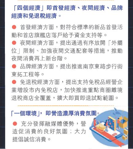 免退稅經濟方面,《措施》提出,支持免稅品經營企業增設市內免稅店,在免稅店設立一定面積的國產商品銷售區,加快推進重點商圈離境退稅商店全覆蓋,擴大即買即退試點範圍。