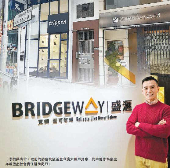 「共渡時艱」成現今社會主旋律,港府早前宣布的兩輪共計1675億元的防疫抗疫基金幫助商界。李根興表示,旗下租戶都有受惠,持有「大牌」的食肆可獲發20萬元,小食店、燒味店等有8萬元津貼,政府還資助人工,還有好多時候都免差餉,變相使得盛汇也受益頗多。