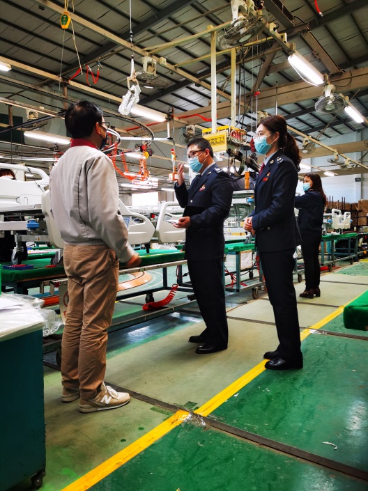 圖為東莞市稅務局稅務人員上門輔導外貿企業廣東羅曼智能科技股份有限公司享受相關稅費優惠政策。