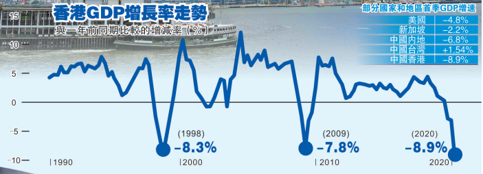 香港科技大學經濟學系前系主任雷鼎鳴表示,香港首季GDP收縮8.9%並不意外,預料全年經濟會負增長,惟現時難以預測實際數字,具體需視乎全球尤其是美國疫情未來變化。
