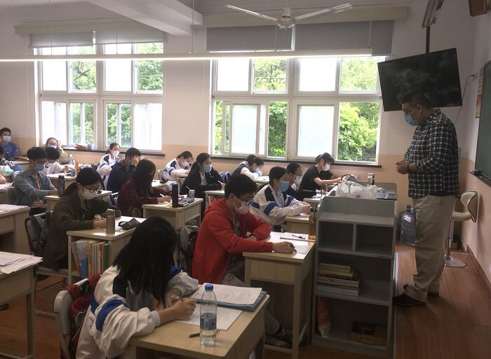 今年建校155周年的上海中学是上海知名老牌学校,高中三年建制,上海生源在校有近1200名学生。自4月27日高三学生复学以来,学校便全过程防控,营造安全、安心教育环境。如学生首日入校门,除需递交健康登记表、随申码绿码查验外,平日还需经红外测温正常后才能进入校区。每幢教学楼内均配置测温系统,对步入教学楼的师生进行快速无感检测。
