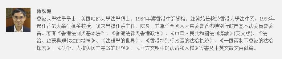 香港大学法学教授陈弘毅在《灼见真知》发表题为《中聯辦、港澳辦譴責郭榮鏗是善意的勸誡》的文章,他認為,兩辦的發言是從香港市民的整體利益出發的,關注的是盡快恢復立法會的正常運作,是善意的勸誡,絕不構成所謂干預特區自治事務。