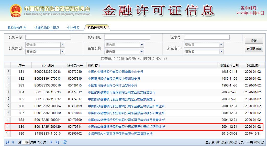 银保监会官网披露金融许可信息显示,2020年以来,已有889家银行支行或营业所终止营业。在终止营业的网点中,有236家属于重组中银行的网点。中新经纬客户端注意到,“六大行”关门的网点共283家,占比超3成。其中农业银行共85家,邮储银行共49家,交通银行共41家,建设银行共40家,工商银行共36家,中国银行共32家。