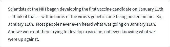 1月11日,美国开始研发疫苗,这比3月中旬美国新冠疫情暴发整整早了2个月。