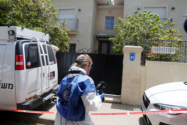 5 月17 日,一名以色列法醫準備進入中國駐以色列大使杜偉在特拉維夫附近荷茲利亞的住所。路透社