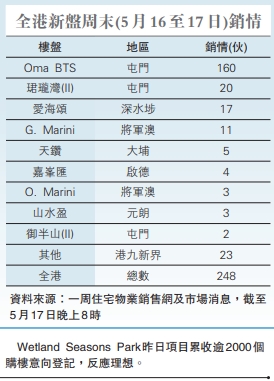至於永泰地產(369)位於屯門青山公路項目OMA by the Sea,在昨日進行首輪銷售,涉及268伙。已收到逾千張票,截至昨晚8時,已有逾160伙獲買家認購。昨日銷售的268伙中,超過九成單位售價低於600萬元,該批單位折實呎價為12734元。OMA by the Sea由兩座住宅大樓組成,涉及517伙,單位實用面積由297至1614平方呎,提供開放式至4房間隔,其中以2房單位為主打,合共225伙,另設9伙特色戶。