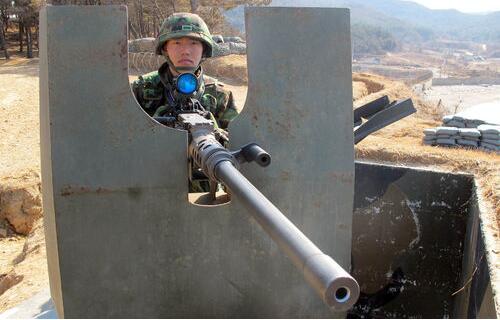 报道称,13日上午,韩国京畿道金浦市某前线哨所内,一名海军陆战队副士官修理KR-6机关枪时,突然发射一枚子弹。此地距离朝鲜仅有1.8公里,事件令韩军非常紧张。
