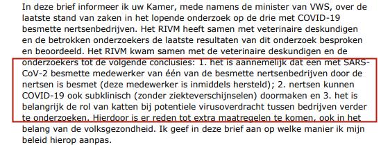 1.一家水貂养殖场的一名工人感染了新冠病毒,证据表明水貂感染人是有可能的(aannemelijk);
