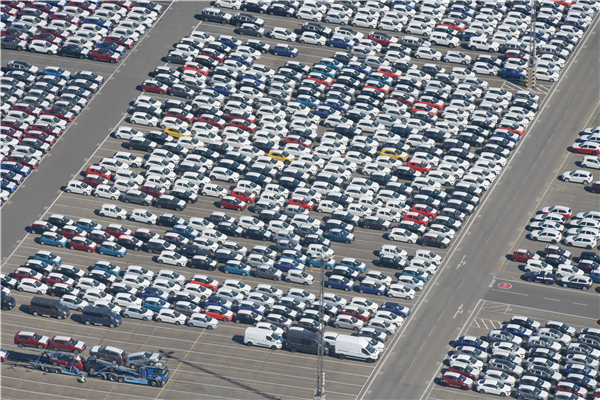 在德國不來梅港,大批汽車因疫情而出口無期。 路透社
