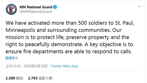 明尼苏达州国民警卫队推特截图