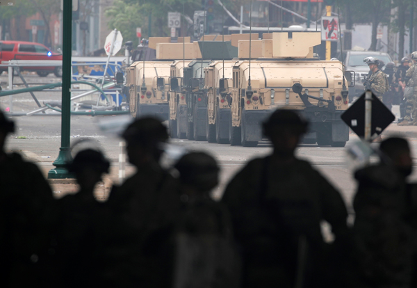 【香港商報網訊】美國明尼蘇達州非洲裔男子因警察暴力執法死亡事件引發的騷亂持續升級。由於該州明尼阿波利斯市內的騷亂整夜未停息,當地時間29日早上8時許,國民警衛隊與巡邏警察進入明尼阿波利斯萊克街,強力清場。總統特朗普29日首度就抗議活動發聲,警告「搶劫開始之時,就是開槍之時」。