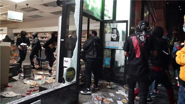 【香港商報網訊】美國非裔男子佛洛伊德遭白人警察跪頸致死案引發抗議及打砸搶浪潮昨天進入第9天,已蔓延全美140多座城市,全國至少11000人被捕,並波及各城市華埠及唐人街。有報道指,在紐約,靠近曼哈頓的華埠從上周日開始,多家藥房、煙酒店與鐘表、首飾店遭到暴徒洗劫,其他城市亦有類似現象。