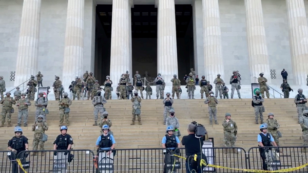 華盛頓林肯紀念堂前有國民警衛隊戒備。路透社