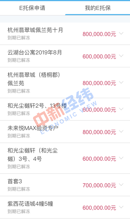 郑娜摇号买房时冻结的首付款。来源:受访者供图