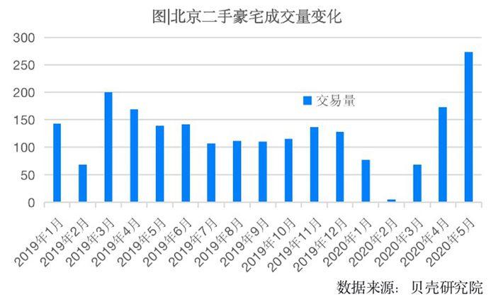 进入4、5月份,受疫情影响需求集中释放、政策利好及季节性因素等影响,北京豪宅市场成交量上升恢复,5月份成交量达到2018年1月以来单月最高记录,环比增长57.8%,同比增长96.4%。而贝壳研究院数据显示,5月北京链家二手房成交量环比增加41.5%,同比增加78.8%。5月份北京二手房市场中豪宅更“热”。