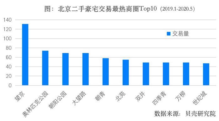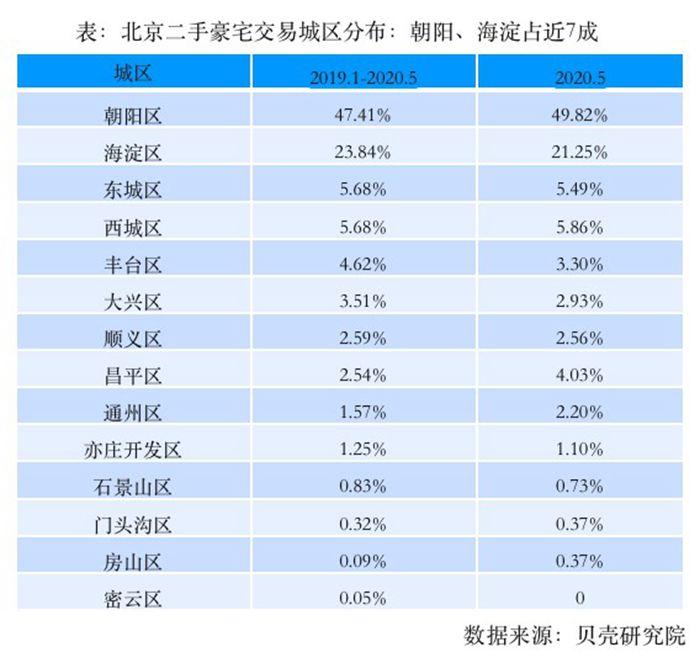 据贝壳研究院对2019年1月至2020年5月以及2020年5月两个不同时间跨度北京成交豪宅的楼盘区位交易信息的统计。