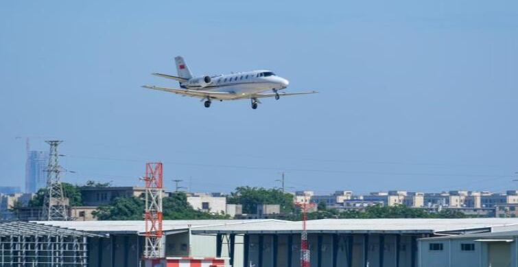 飞机在海口美兰机场二期跑道上空进行低空通场飞行。中新网