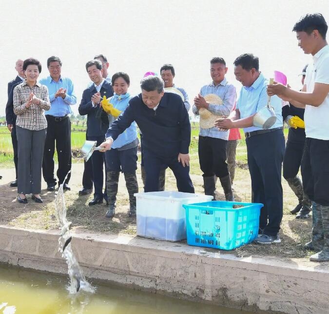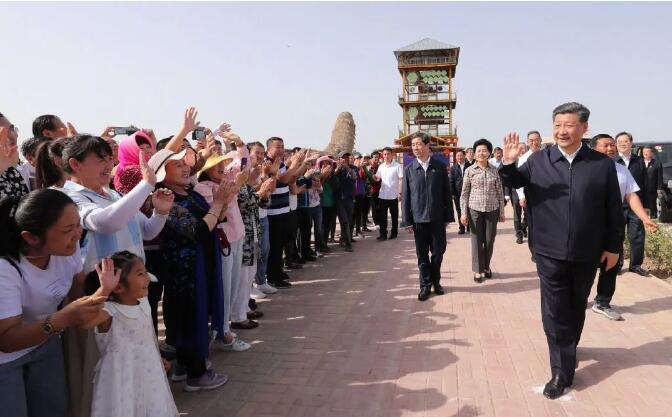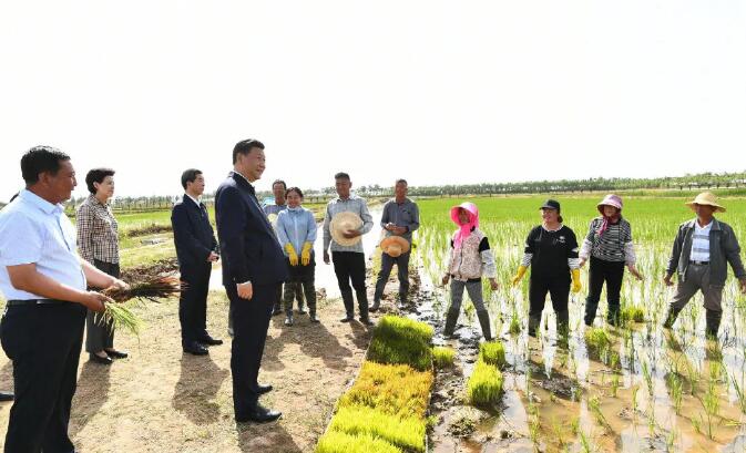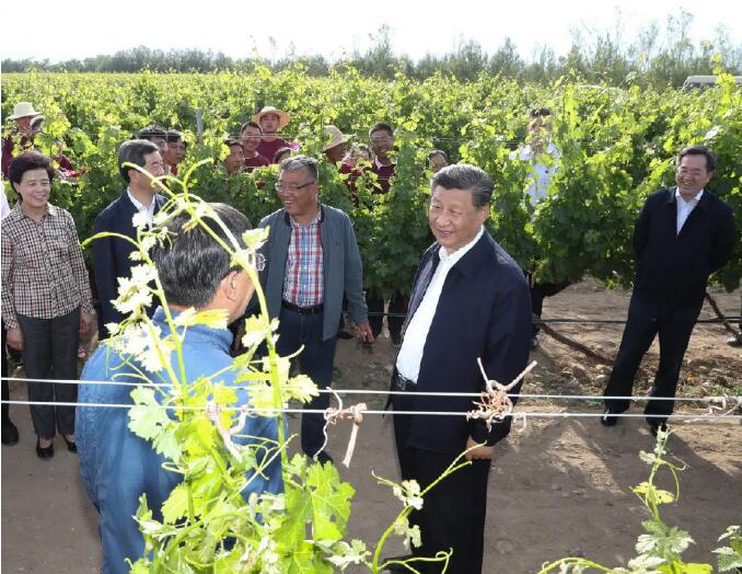 习近平总书记9日在银川考察调研。他先后来到贺兰县稻渔空间乡村生态观光园、贺兰山东麓葡萄种植园,了解当地发展特色农业产业、加强贺兰山生态保护等情况。